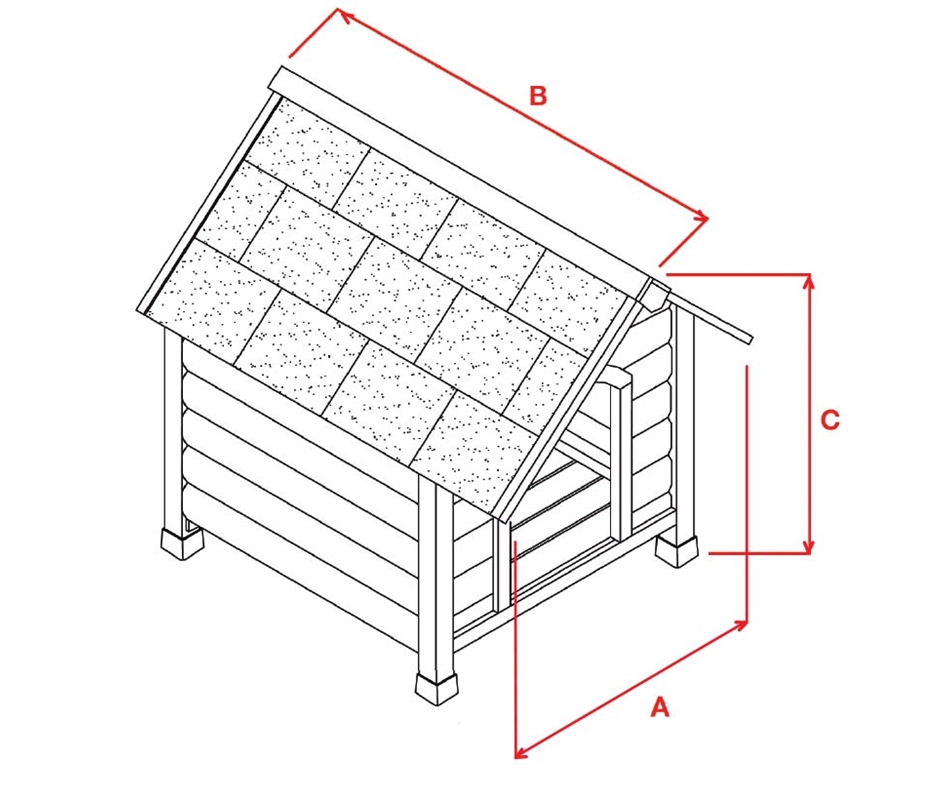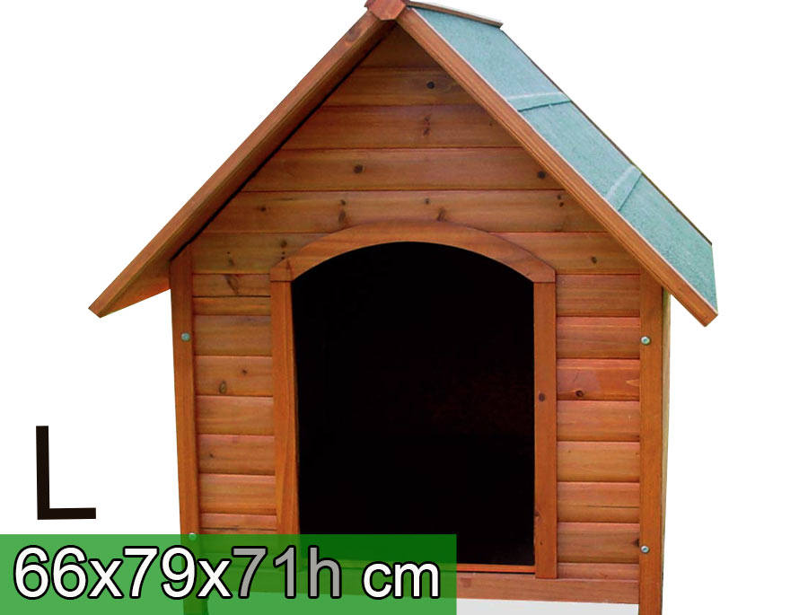 Il tetto è impermeabilizzato; il fondo è a doghe (in 2 pezzi) removibile per agevolare le operazioni di pulizia del fondo della cuccia.