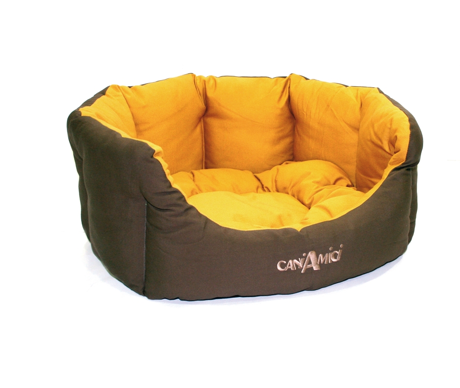 cuccetta imbottita per cani con cuscino estraibile double face, rivestita con tessuto cotone 100% e con imbottiture in poliestere.