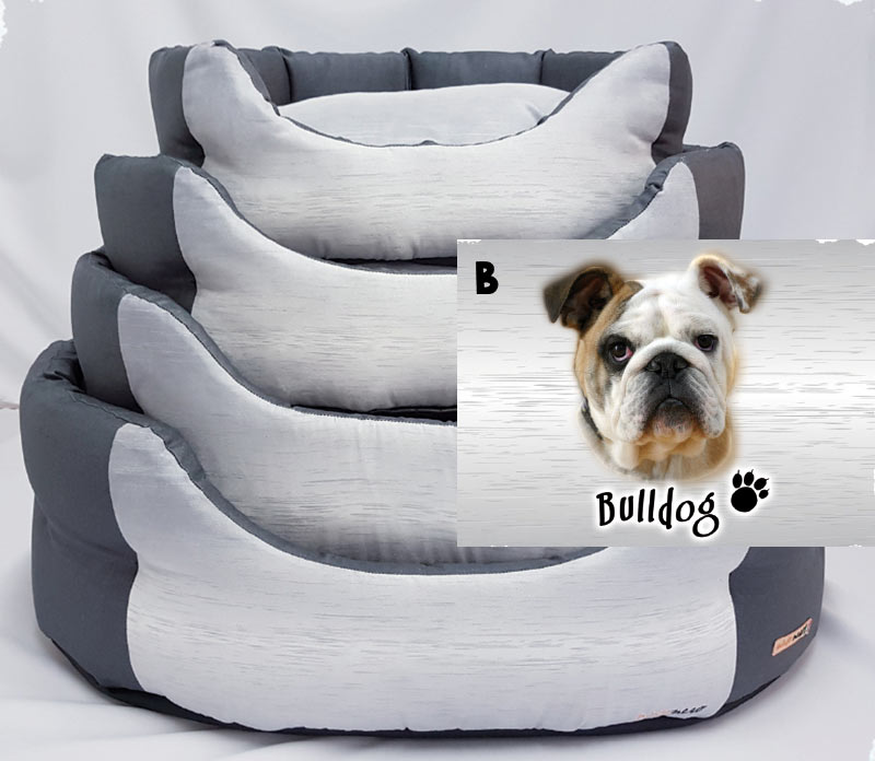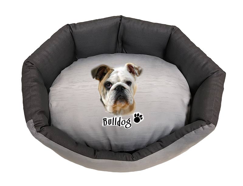 cuccia personalizzata con razza Bulldog a forma ovale