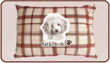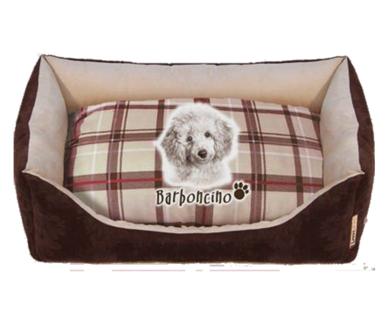 Composta da struttura a tinta unita e cuscino indipendente è interamente sfoderabile e lavabile in lavatrice. Le spalliere della struttura sono sagomate per facilitare il reinserimento, il fondo è in ecopelle, il cuscino è double face con un lato personalizzato per razza su motivo tartan e un lato in tinta unita come il bordo.