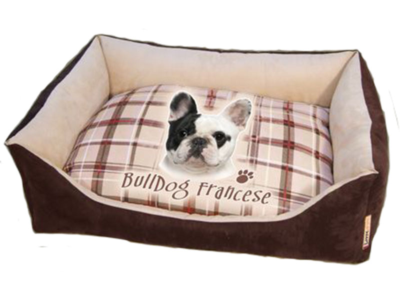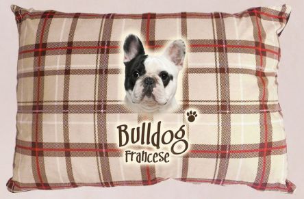 Composta da struttura a tinta unita e cuscino indipendente è interamente sfoderabile e lavabile in lavatrice. Le spalliere della struttura sono sagomate per facilitare il reinserimento, il fondo è in ecopelle, il cuscino è double face con un lato personalizzato per razza su motivo tartan e un lato in tinta unita come il bordo.