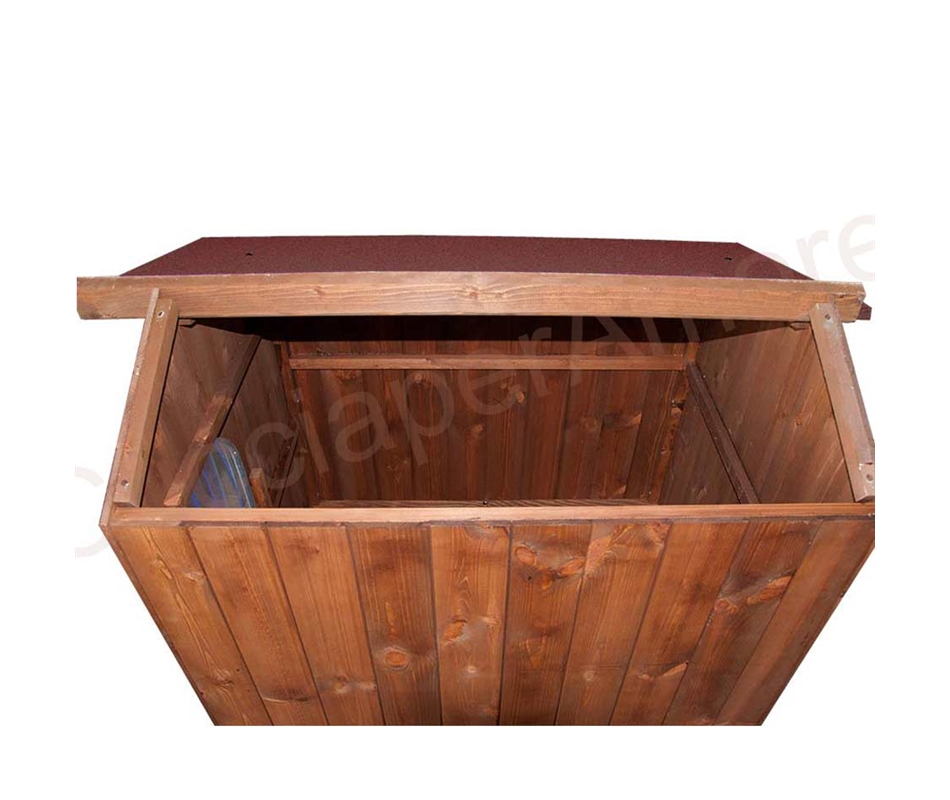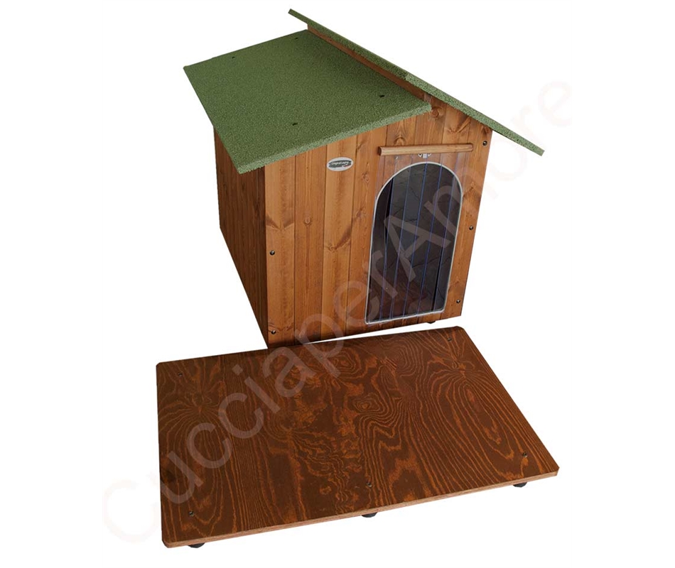 Il tetto è impermeabilizzato con guaina ardesiata è realizzato a 2 falde sovrapposte (per facilitare il depluvio), il tetto è apribile svitando le viti di fissaggio.