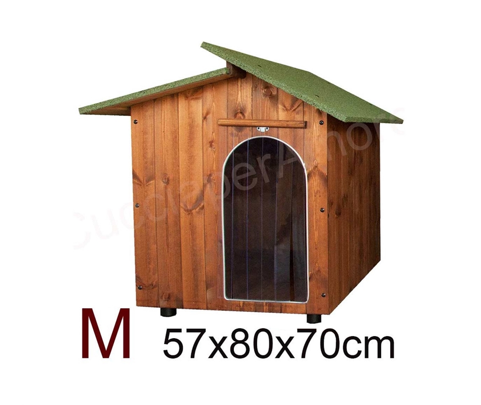 Realizzata in legno, con tetto a falde sovrapposte, corredata di piedi in gomma per il rialzo da terra.