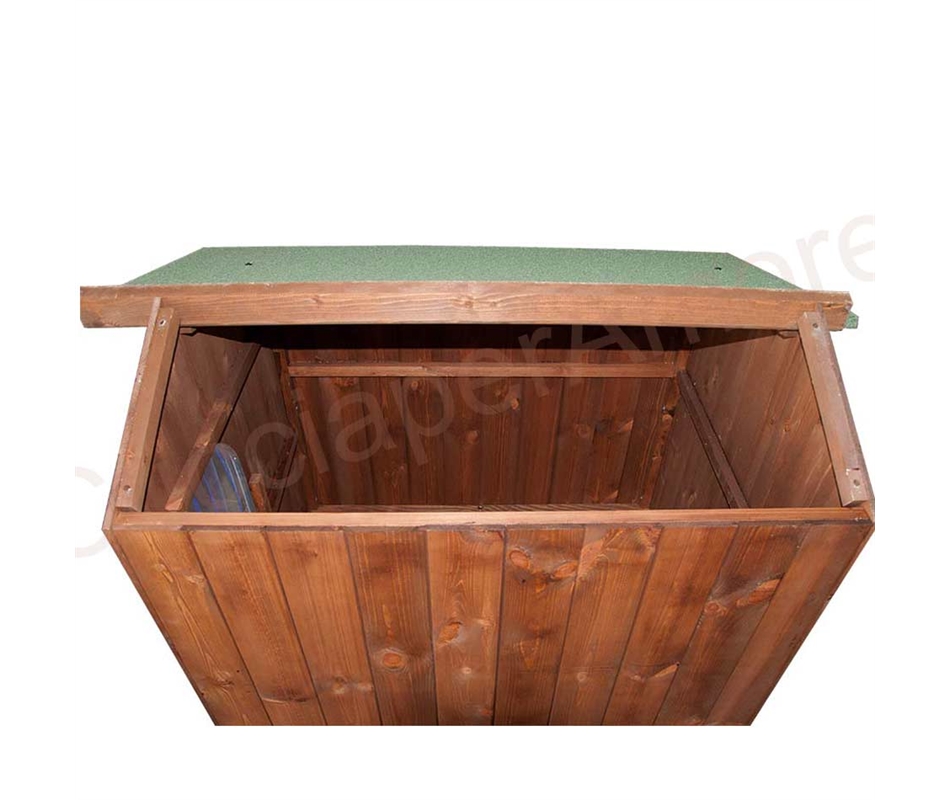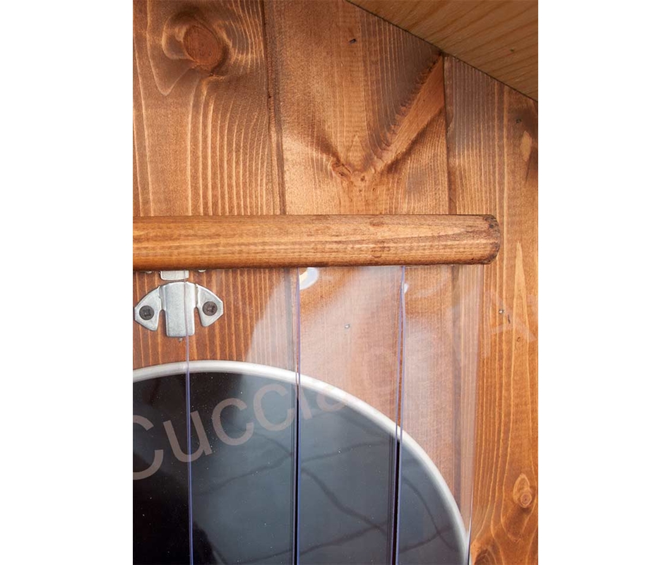 Il tetto è rifinito con guaina ardesiata impermeabilizzante, è apribile svitando le viti di ancoraggio alle pareti.