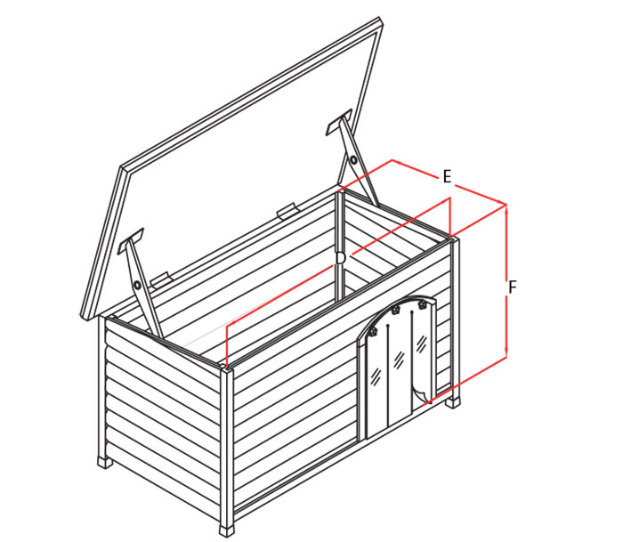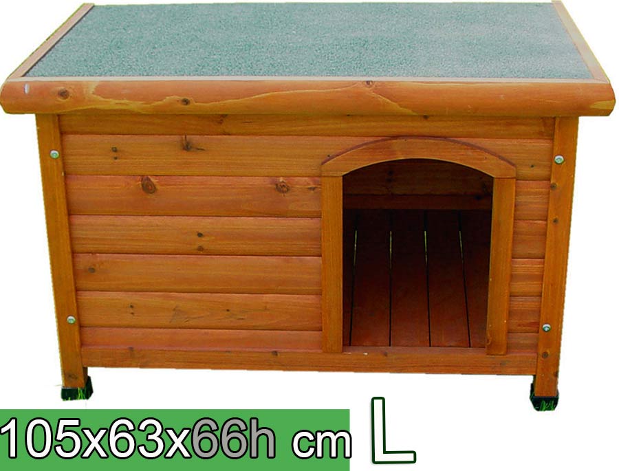 Il tetto è apribile a ribalta ed impermeabilizzato; il fondo è a doghe (in 3 pezzi) removibile per agevolare le operazioni di pulizia della cuccia.