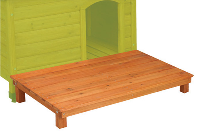 Opzionalmente la cuccia può essere corredata con una piattaforma/brandina in legno, da porre all'esterno della cuccia, come zona relax da esterno rialzata dal terreno.
