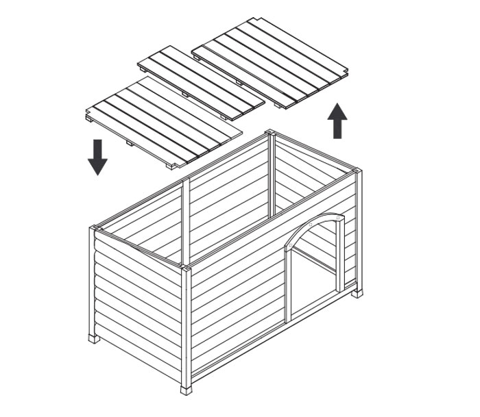 Il tetto, impermeabilizzato, è apribile a ribalta, il fondo a doghe è removibile in questo modo le operazioni di pulizia della cuccia sono agevolate, potendo raggiungere ogni angolo della cuccia.