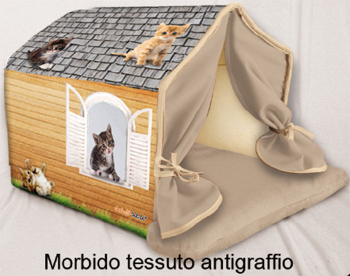 cuccia per gatti a forma di casetta in tessuto antigraffio