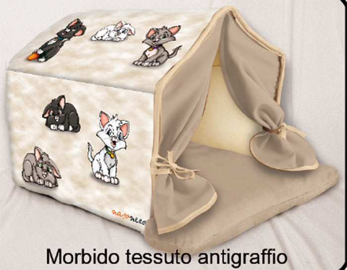 cuccia per gatti a forma di casetta in tessuto antigraffio