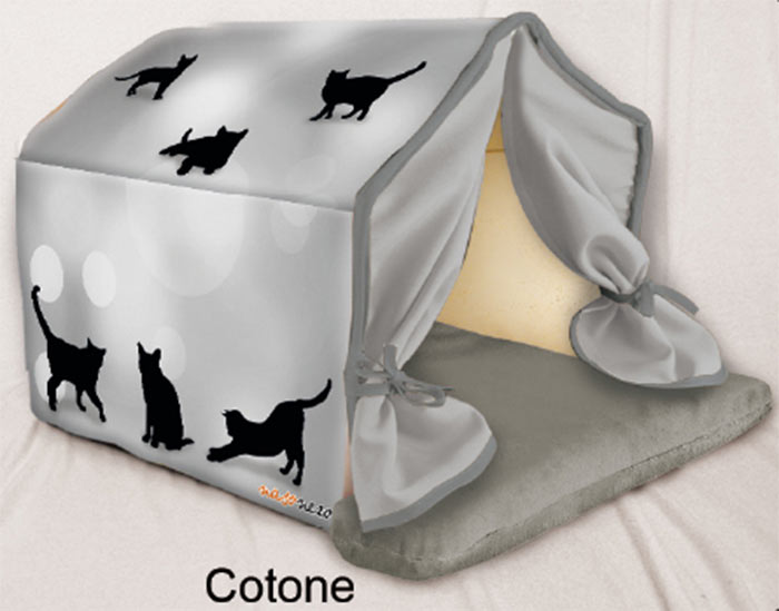 su eleganti tinte a contrasto questa cuccia, caratterizzata da sagome di gatti, sarà un luogo dove il vostro gatto amerà rintanarsi.