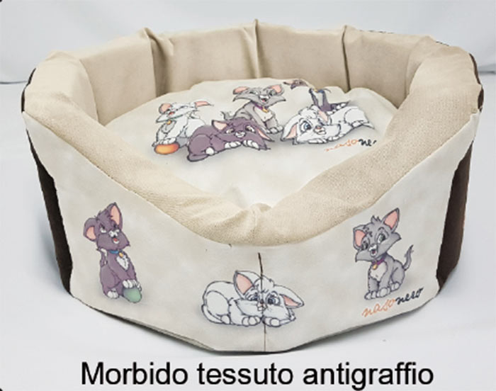su eleganti tinte neutre questa cuccia è personalizzata con disegni di adorabili gatti!