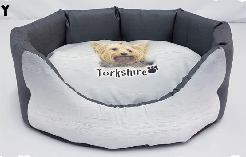 cuccia personalizzata con razza Yorkshire a forma ovale